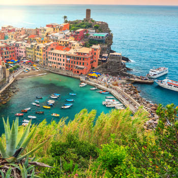 Toscana har böljande gröna kullar, medeltida städer, vingårdar och olivlundar, men också en inbjudande kuststräcka med badorter på rad. Vi bor vid kusten i Lido di Camaiore och därifrån gör vi utflykter in i landet till Lucca, Florens, Pisa och två vingårdar. Vi besöker också Cinque Terre, ”de fem landen”, där byarnas pastellfärgade hus klättrar på berget. Vägen till och från Italien går genom Tyskland, Österrike, Schweiz och Liechtenstein.
