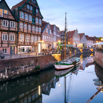 Stade är en charmig och vacker liten stad fylld av svenska minnen, korsvirkeshus, mysiga gränder, caféer och butiker. I det natursköna området kring staden breder äpple- och fruktodlingarna ut sig, och vi får även prova ädla droppar på ett lokalt bryggeri. En båttur på kanalen ger oss möjlighet att upptäcka Stade från ett nytt och stämningsfullt perspektiv.
