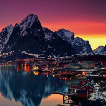 Norr om Polcirkeln ligger ögruppen Lofoten. Det är magiskt vackert här med, dramatiska berg, vackra sandstränder och små fiskelägen. En av världens vackraste platser enlig många. Öarna har "fast" förbindelse med varann och fastlandet via ett antal broar och tunnlar som gör det extra lätt att besöka denna exotiska del av Norge. Lofoten har stark historisk anknytning till vikingatiden. På Lofotr Vikingmuseum i Borg kan du uppleva vikingatiden i levande miljö, bland annat i det 83 meter långa rekonstruerade långhuset, det största som någonsin hittats från tidsperioden. Tack vare Golfströmmen har Lofoten ett mycket mildare klimat än andra delar av världen på samma breddgrad. Från slutet av maj till mitten av juli kan du uppleva midnattssol och mellan september och april kan du se norrskenet dansa över himlen.